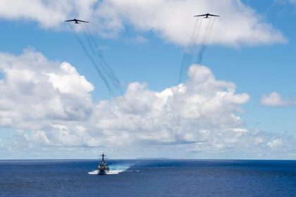 B-52, B-1 and B-2 simultaneously conduct missions from Guam in unprecedented integrated bomber operation in Pacific