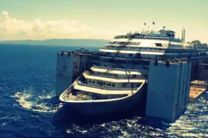 Drones are escorting Costa Concordia providing a different point of the giant…