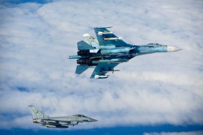 What a close encounter: Russian Su-27 and British Typhoon. On Jun. 17,…