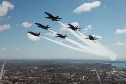Drone Flies Dangerously Close to Blue Angels in Detroit America Strong Flyover.