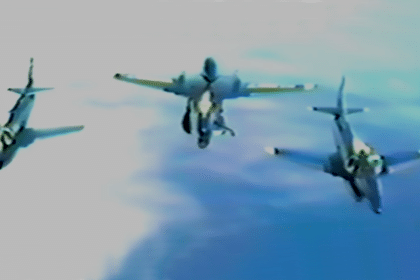 Camera Drone Video Shows Small Drone Within Feet of Blue Angel Formation.…
