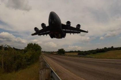 Watch this: huge C-17 Globemaster cargo buzzes cameraman head on landing