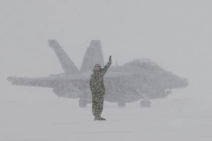 Photo: U.S. Navy EA-18G Growler caught under massive snow storm