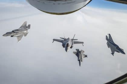 The aerial refueling of four RNoAF (Royal Norwegian Air Force) F-35A Lightning…