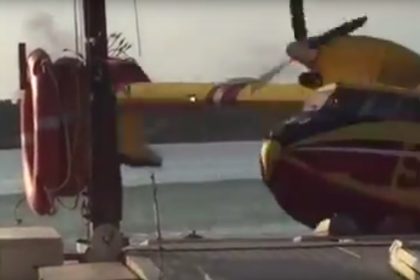 Close Call: CL-415 Canadair Hits A Barge After Scooping Water In Scary Footage