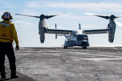 CMV-22B Osprey Makes First Ever Landings And Take-Offs From An Aircraft Carrier