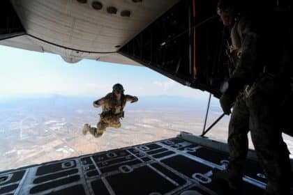Pararescuemen training jumps from U.S. Air Force HC-130s
