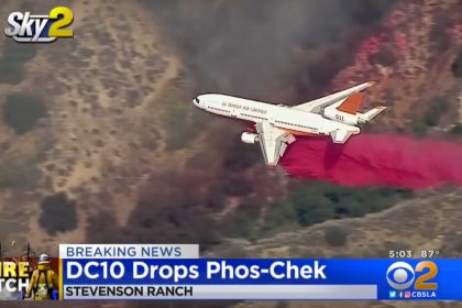 Watch a DC-10 skirt the mountain tops to fight wildfires in Southern California