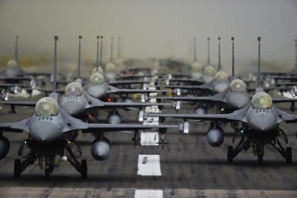 52FW Stages Elephant Walk With 26 F-16s At Spangdahlem Air Base In Germany