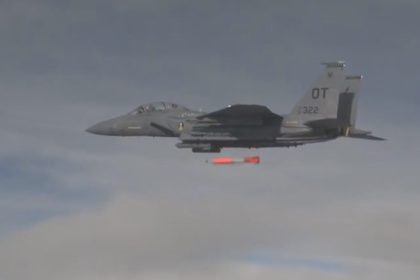 Watch a U.S. Air Force F-15E drop a dummy Nuclear Bomb on Nevada range during a test