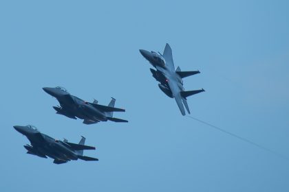 Cool photo shows F-15E Strike Eagles conducting a Missing Man formation to honor Korean War ace