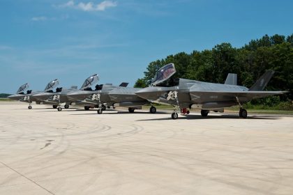 Here’s a photo of the four F-35B jets set to take part to UK airshows stuck on the ground at Pax River
