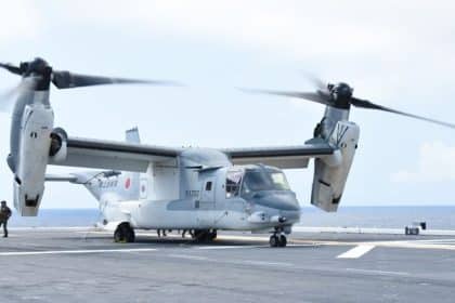 JGSDF V-22 Osprey Lands on Helicopter Carrier JS Izumo as Tilt-Rotor Appears to Resume Regular Flights