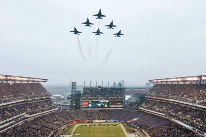 The impressive sight of the Blue Angels flyover at the NCAA Army-Navy game