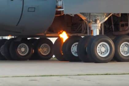 A U.S. Air Force C-5M Super Galaxy experienced brake fire after landing…