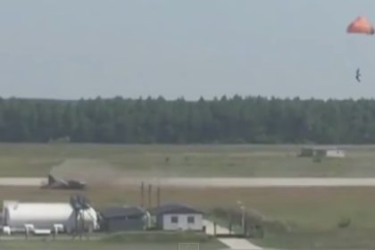 Video shows the moment pilot ejects from Hungarian Gripen jet after belly landing