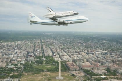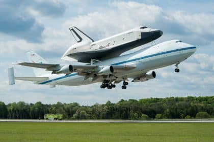 On Apr. 17, Space shuttle Discovery, mounted atop a NASAย B747 Shuttle…
