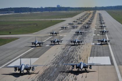 Photo: nearly 70 F-15E Strike Eagles in largest Elephant Walk to date.