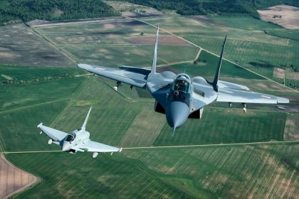 Polish Air Force Mig-29 and Royal Air Force Typhoon jets on Baltic Alert