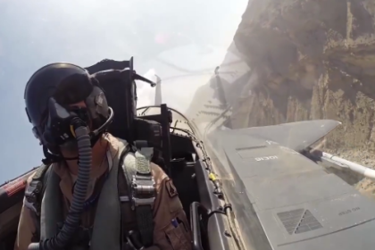 Cockpit video (with raw sound) of F-15E Strike Eagle flying through canyons