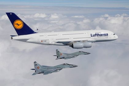 Bulgarian MiG-29s Escort Lufthansa Airbus A380 Arriving In Sofia For The First Time