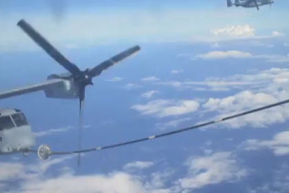 Watch U.S. Marine Corps Osprey tilt-rotor aircraft (supported by KC-130s) set new distance record