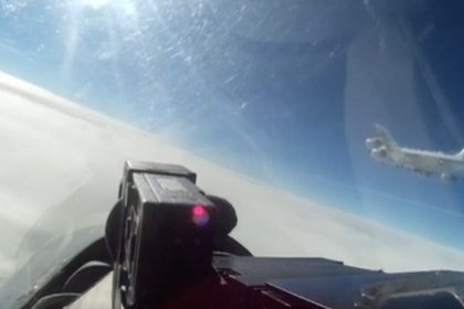 Interesting footage filmed by a Su-30 fighter scrambled to intercept U.S. traffic…