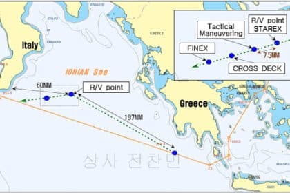 Republic of Korea Navy's warships meet the Italian aircraft carrier Cavour in the Mediterranean Sea