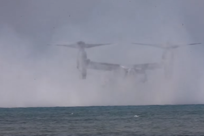 This helocast insertion is one of the first ever conducted by a V-22 Osprey tilt-rotor aircraft
