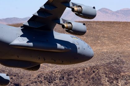 Watch a U.S. C-17 Globemaster III cargo fly through the famous Star Wars Canyon in Death Valley