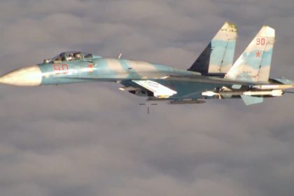 Russian Su-27 buzzes U.S. RC-135U spyplane. Once again.