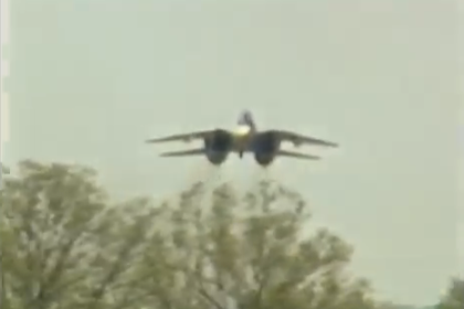 F-14 Tomcats flybys, treetop passages and gun strafing video