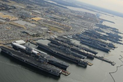 Aerial view of Naval Station Norfolk shows the U.S. has not learned much from Pearl Harbor