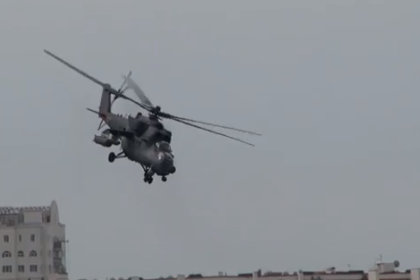 Two Russian Hind choppers having fun at low altitude over Sevastopol in…
