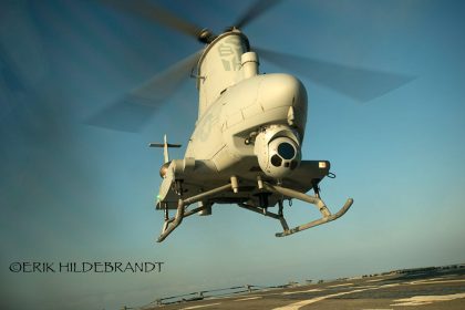 World Exclusive: U.S. Navy MQ-8B Firescout drone copter returns to service after grounding. And conducts Dual Air Vehicle operations too.