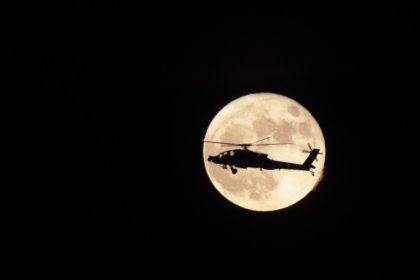 U.S. Army National Guard AH-64D Apache flying in Utah’s Supermoon